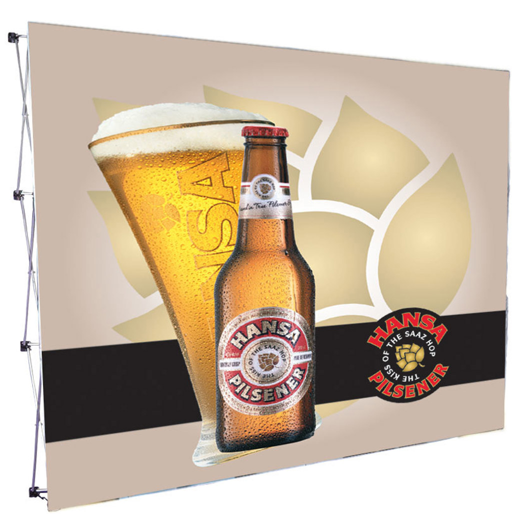 The Backdrop Banner is easily collapsible and comes with a strong Aluminium framework. Easy to erect & easy to store. Replaceable Fabrics available. Indoor Application.