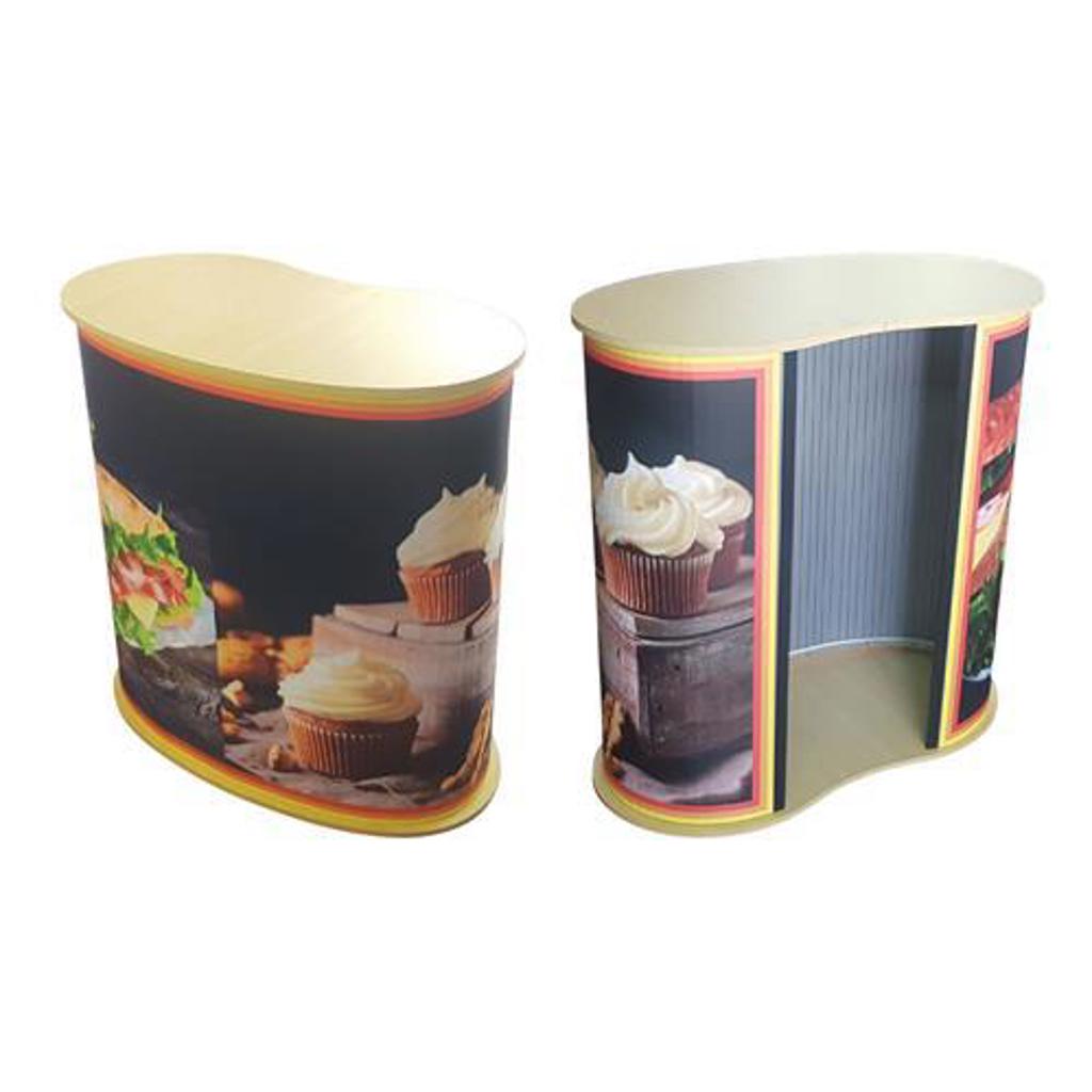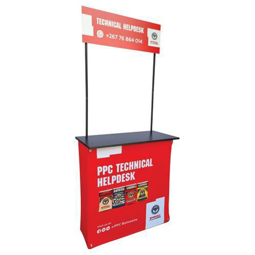 The Sample Table is a quick, light, and easy way to display samples and your brand simultaneously. Now available with a Fabric or Forex Header Board for additional display potential.