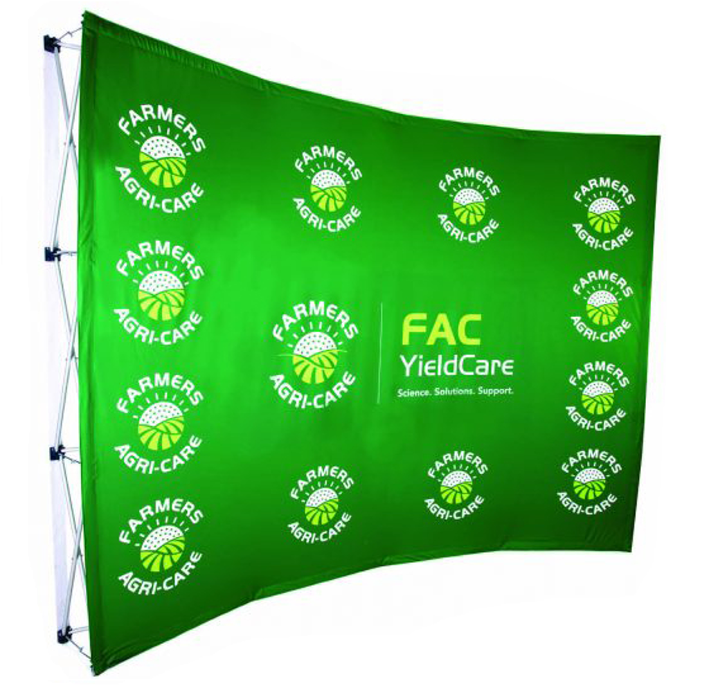 The Backdrop Banner is easily collapsible and comes with a strong Aluminium framework. Easy to erect & easy to store. Replaceable Fabrics available. Indoor Application.